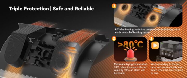 Ein PTC-Heizelement dient als zusätzliche Sicherheitsmaßnahme. Die Temperaturkontrolle erfolgt softwarebasiert, um Verformungen oder Beschädigungen der Filamente zu vermeiden. Das Gerät soll während des Betriebs eine konstante Temperatur beibehalten können, Abluftlöcher gibt es auf der Oberseite. Jene müssen allerdings manuell geöffnet und geschlossen werden. Bei abnormalen Temperaturschwankungen ertönt ein Alarm. Die Vorbestellungsphase für den AMS Heater beginnt heute und läuft bis zum 15. August zu einem Einführungspreis von 99,99 €. Der finale Preis soll sich dann bei rund 120 Euro einspielen.