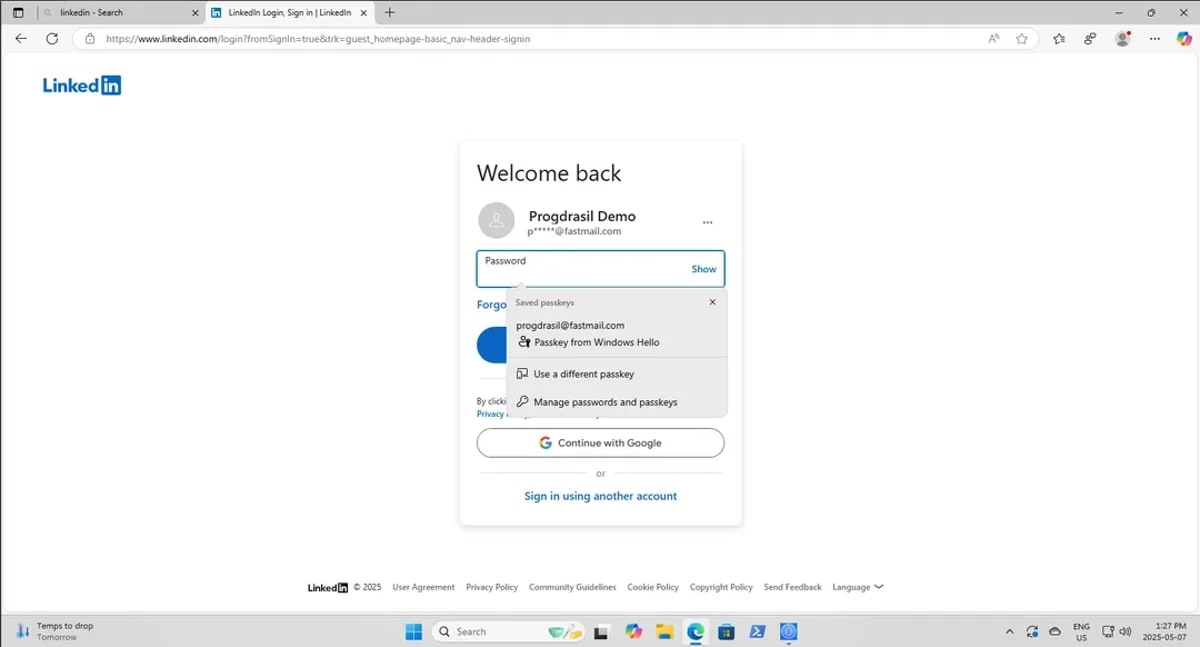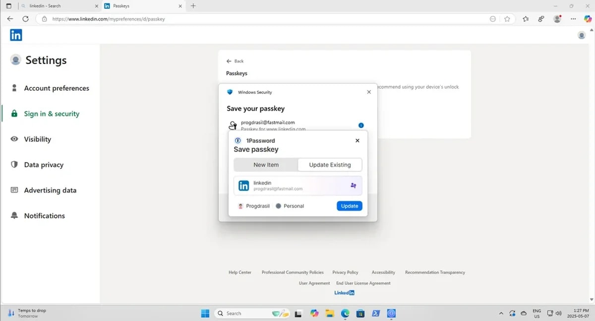 Es geht darum dass wenn Windows einen Passkey anfodert 1PW als Qulle im Windows internen dialog hinterlegt ist.