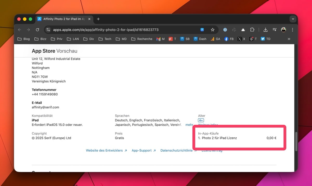 Aktuell ist es auf deren Website auch nicht mehr möglich, die Affinity Software für Mac / Windows zu kaufen. Es gibt einfach gar keine Möglichkeit mehr, irgendwas zu kaufen. Falls die das jetzt durchziehen, wird der Laden (Serif) einfach mal einen Monat lang keinen Umsatz machen.