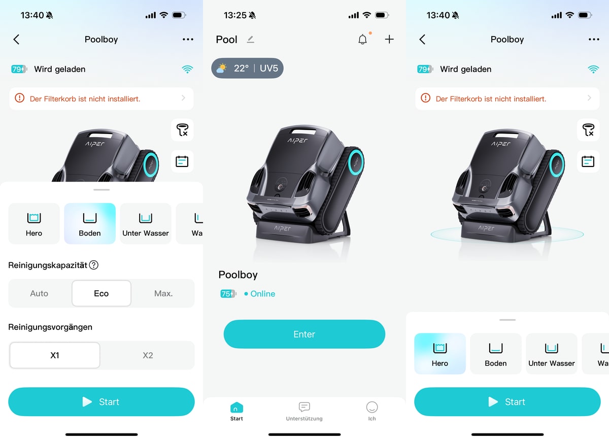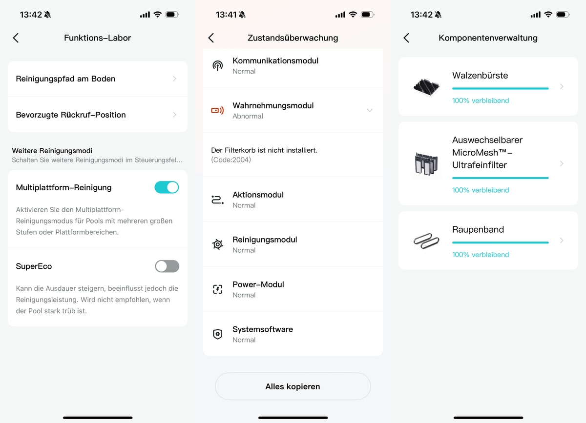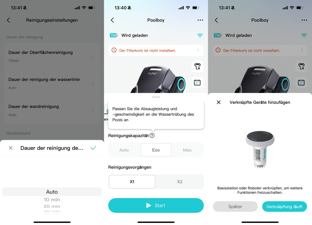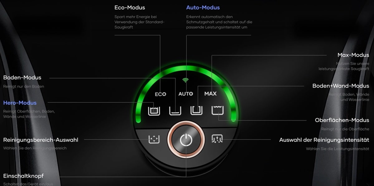 Wobei man vermutlich in dieser Preisklasse nichts anderes erwarten kann. Grundsätzlich ist es so, dass man nach längerer Abstinenz eher den Powermodus nutzt, während man bei regelmäßiger Reinigung wirklich den Eco-Modus anwerfen kann. Was er wie lange reinigt, ist in der App einstellbar.