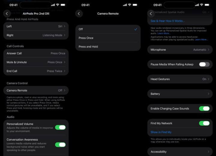 Ab sofort findet ihr in den Einstellungen auch zwei neue Optionen. Wenn ihr möchtet, könnt ihr die Kopfhörer nun zum Auslösen von Videos oder Fotos nutzen und automatisch die Musik anhalten, sollten die Kopfhörer erkennen, dass ihr eingeschlafen seid. Es gibt außerdem auch Erinnerungen, die AirPods zu laden, sollte der Akku fast den Geist aufgeben.