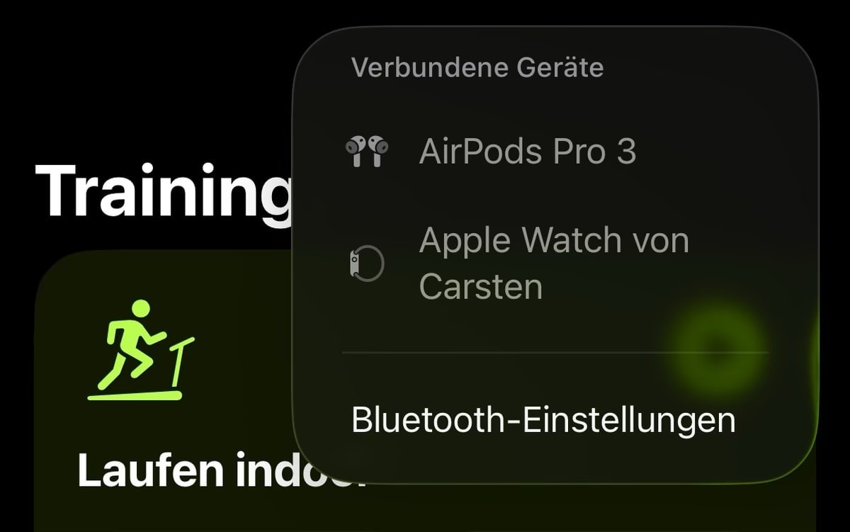 Da ich aber eine Apple Watch nutze, brauche ich diese Funktion eigentlich nicht. Aber haben ist bekanntlich besser als brauchen – und ich bin mir sicher, dass es für sehr viele Käufer nützlich ist. Für angehende Sportler empfehle ich da neben den AirPods Pro 3 auch den Blick in Apples Fitness-App. Der Bereich Training erlaubt es auch, Trainings mit dem iPhone aufzuzeichnen. Im Zusammenspiel mit den Daten der AirPods ist das eine gute Sache. Und übrigens: Die neuen AirPods Pro 3 messen tatsächlich sehr gut, ich bin ja „nur“ Läufer.