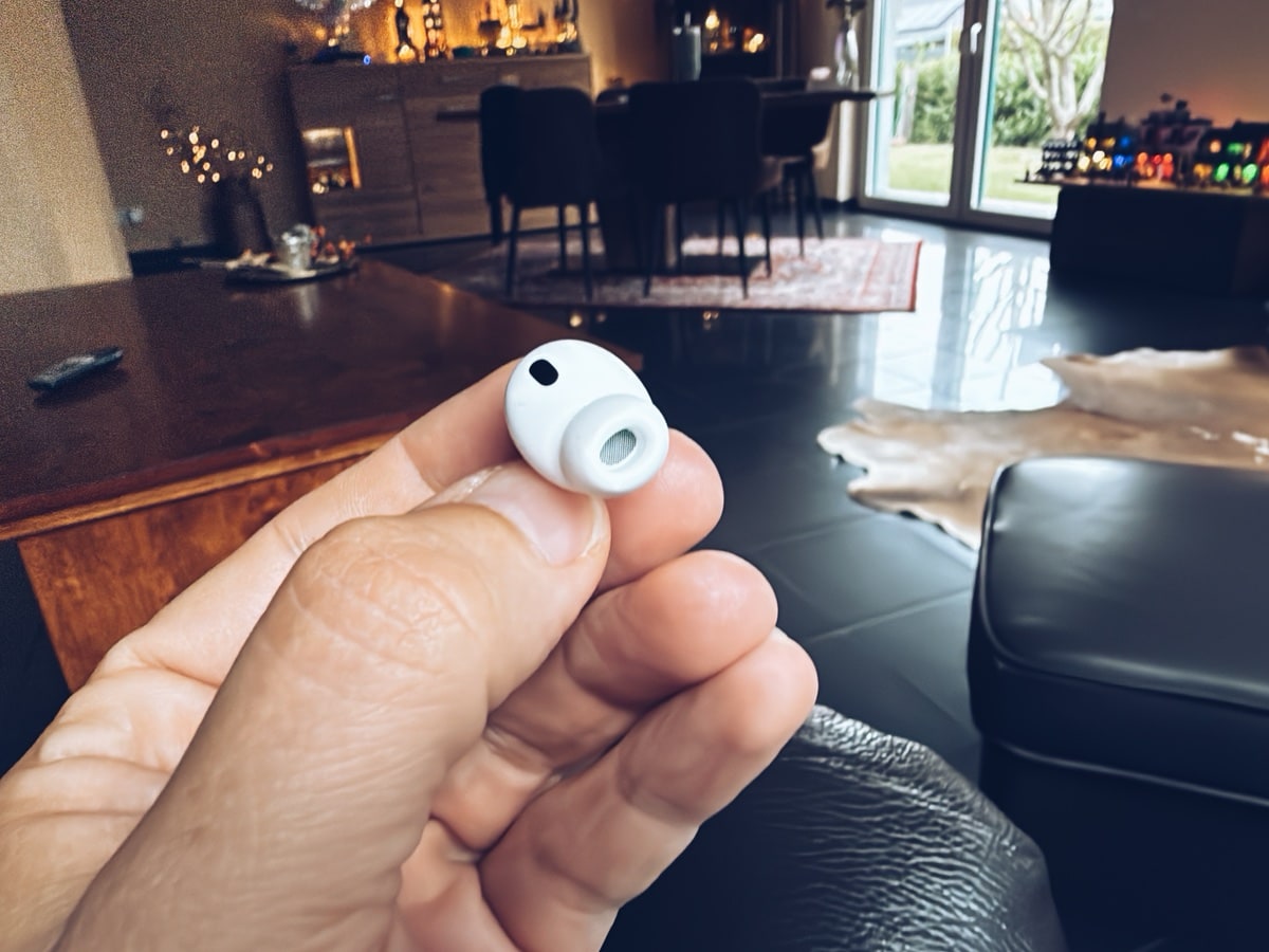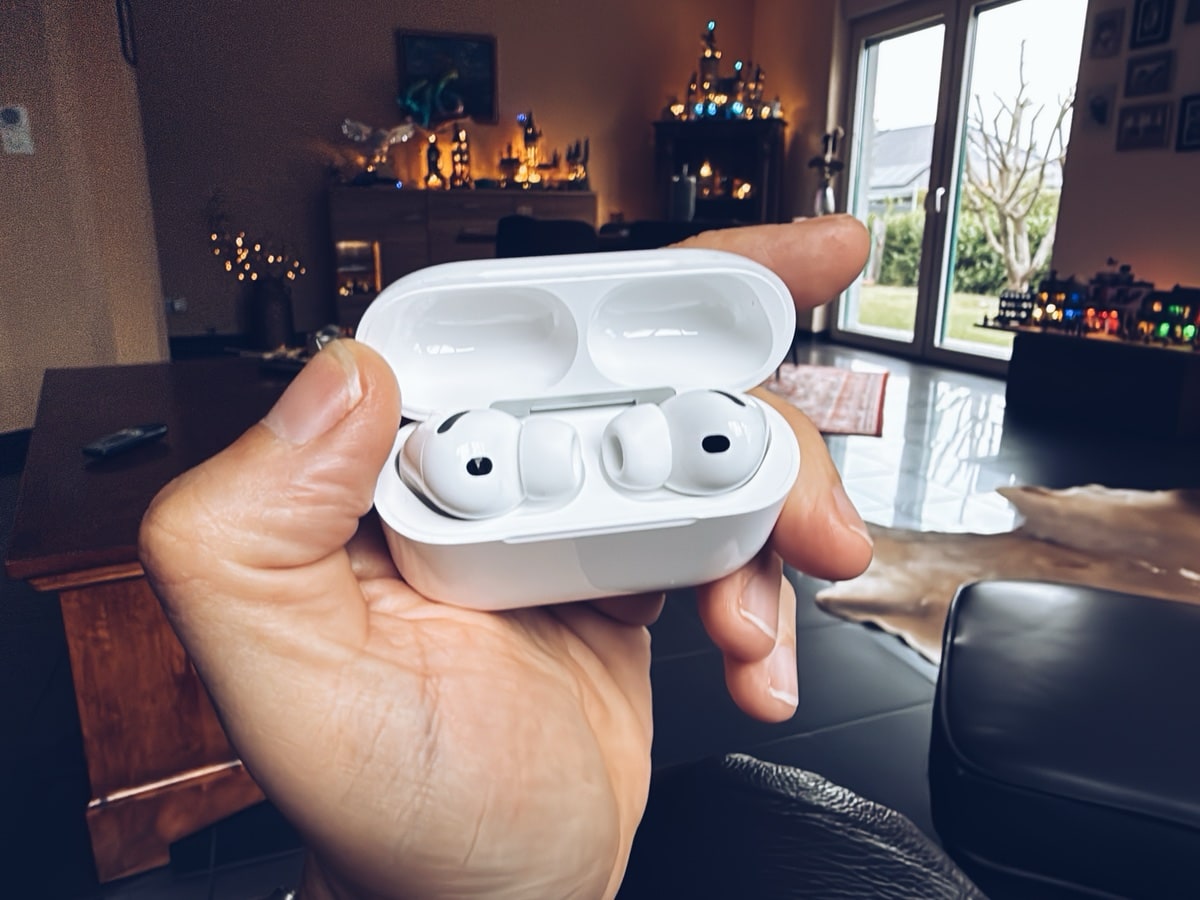 Die aktive Geräuschunterdrückung hat laut meiner Ohren einen merklichen Sprung nach vorne gemacht. Apple spricht von einer Verdoppelung der Leistung im Vergleich zum Vorgänger. Diese Aussage lässt sich zwar schwer in exakte Zahlen fassen, aber die Verbesserung ist im Alltag deutlich spürbar. Gerade bei konstanten Hintergrundgeräuschen zeigt sich das im Vergleich. Dennoch: Wenn ihr ordentlich Wind oder Gestürme um eure Ohren habt, dann hört ihr das immer noch.