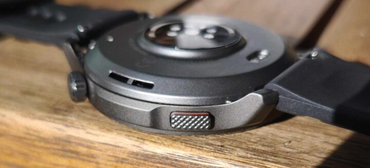 Die Bedienung der Amazfit Balance 2 läuft weitgehend über den Touchscreen, rechts sitzen aber auch eine drehbare Krone sowie ein Button. Über Drehungen der Krone könnt ihr z. B. durchs Workout-Menü navigieren. Ein Druck aktiviert dann den jeweiligen Punkt. Der weitere Button fungiert als Shortcut zum Funktions-Menü, wenn der Screen ausgeschaltet ist, bzw. ihr euch auf dem Watchface befindet. Sonst dient die Taste als Zurück-Shortcut. Ist ein wenig gewöhnungsbedürftig, aber dann kommt man damit gut zurecht.