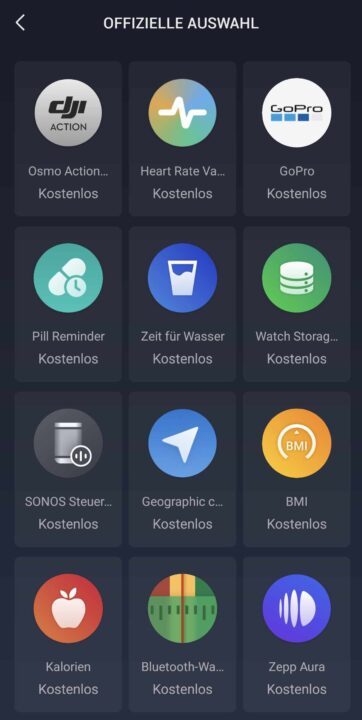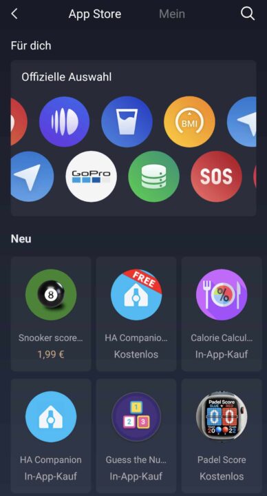 Ihr könnt auf die Amazfit Balance 2 auch zusätzliche Apps laden, die ihr über die Zepp-App als Mittelsmann durchstöbern und beziehen könnt. Die Auswahl ist nicht mit Wear OS vergleichbar, beinhaltet aber sowohl kostenlose als auch kostenpflichtige Anwendungen für z. B. Sudoku auf der Smartwatch, zusätzliche Meditations-Anwendungen oder auch den Home Assistant Companion fürs Smart Home.