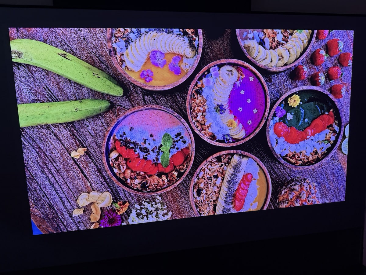 Tolle Helligkeit, satte Farben – und das nicht nur bei Filmen und Serien, auch das Zocken machte über HDMI 2.1 Spaß. Wichtig zu erwähnen: Wem das Weiß zu kalt ist oder so, der kann das Bild natürlich anpassen. Logo: Ist die Umgebung heller, dann merkt ihr das auch ein wenig, weil das Schwarz etwas heller wirkt, in richtiger Dunkelheit ist das einfach nur ein Träumchen.