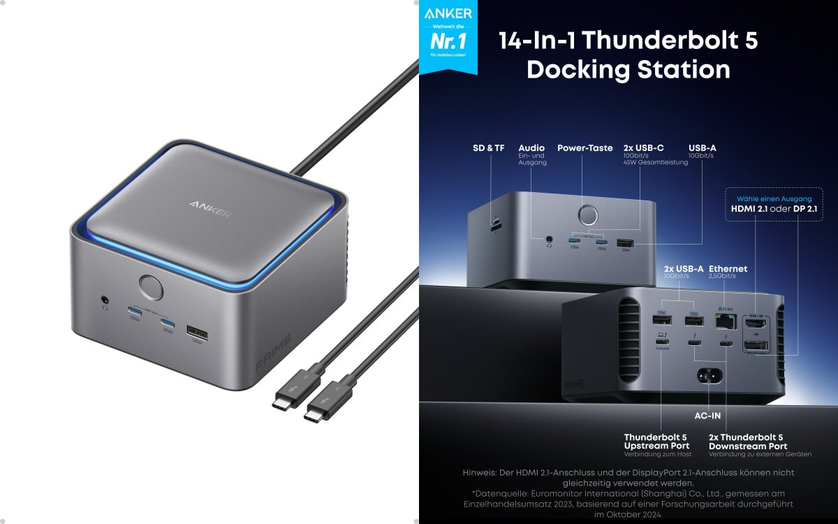 Anker Prime: Docking-Station mit Thunderbolt 5 vorgestellt