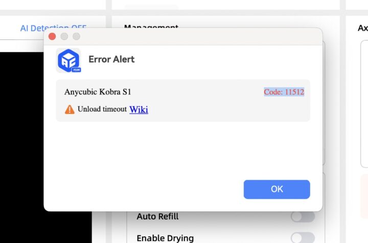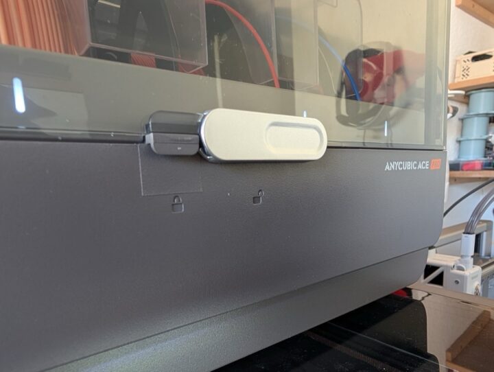 Die ACE Pro verfügt über eine RFID-Erkennung, um Filamenttyp und -farbe automatisch zu erkennen. Das funktioniert zuverlässig mit Anycubic-eigenem Filament, angeblich sollen hier auch andere Hersteller funktionieren (u.a. eSun). Mit dem automatischen Filamenteinzug des ACE Pro bin ich noch nicht so ganz zufrieden. In unregelmäßigen Abständen erhalte ich beim Start eines neuen Drucks die Meldung, dass der Einzug des neuen Filaments nicht möglich ist. Schaut man dann nach, ist schnell zu erkennen, dass das vorher genutzte Filament auch noch gar nicht vernünftig aus dem Endstück des PTFE-Tubes gezogen wurde und somit auch gar kein Platz für neues Filament da ist. Dann hilft allerdings auch “schnell”, wenn man über die App oder den Slicer den Filamentauswurf noch einmal ansteuert, anschließend kann der neue Druck weitergehen.