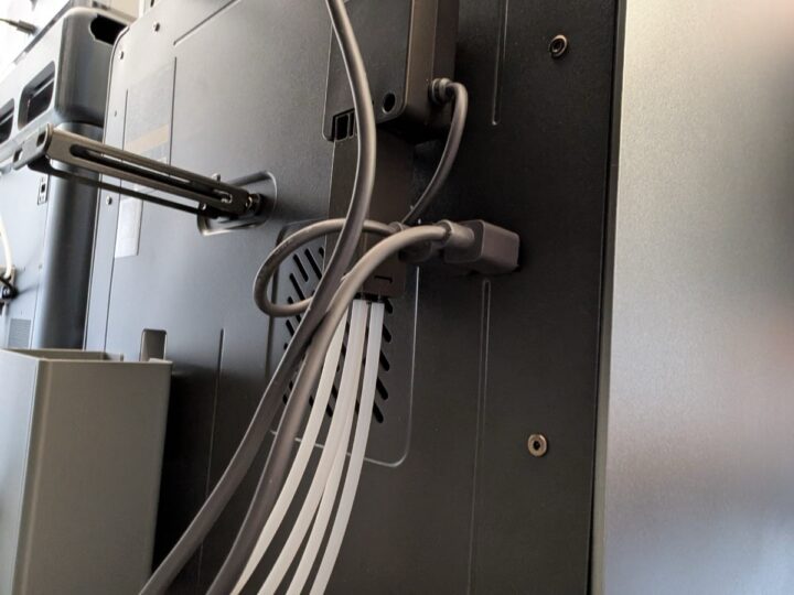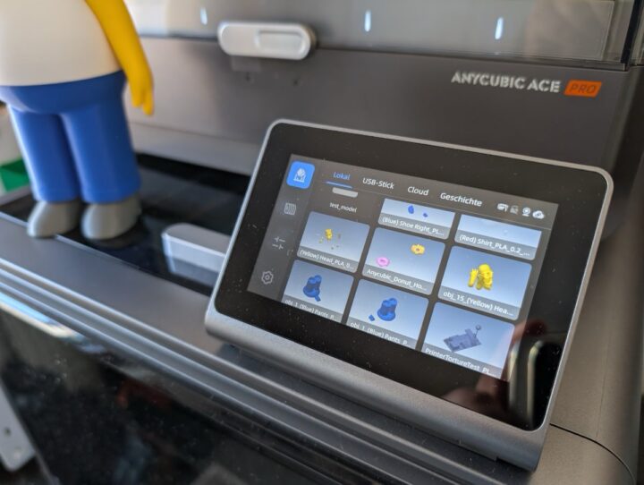 Anycubic wirbt mit einem Start in 15 Minuten. Nun ja, das ist sportlich. Realistisch betrachtet dauert es vielleicht einen Tick länger, aber der Aufbau ist tatsächlich keine Raketenwissenschaft. Hab das gemeinsam mit Sohnemann erledigt, dessen filigrane Hände passen hervorragend, um die kleinen Sicherungsschrauben an Druckbett und Co. zu lösen. Die Hauptarbeit besteht nämlich darin, die Transportsicherungen zu entfernen. Dann wird die ACE Pro Einheit oben auf den Drucker gesetzt. Kabel verbinden (Strom für die ACE Pro, Datenkabel zum Drucker) und die vier PTFE-Schläuche vom ACE Pro zum Filament-Puffer auf der Rückseite des Druckers führen und anschließen.