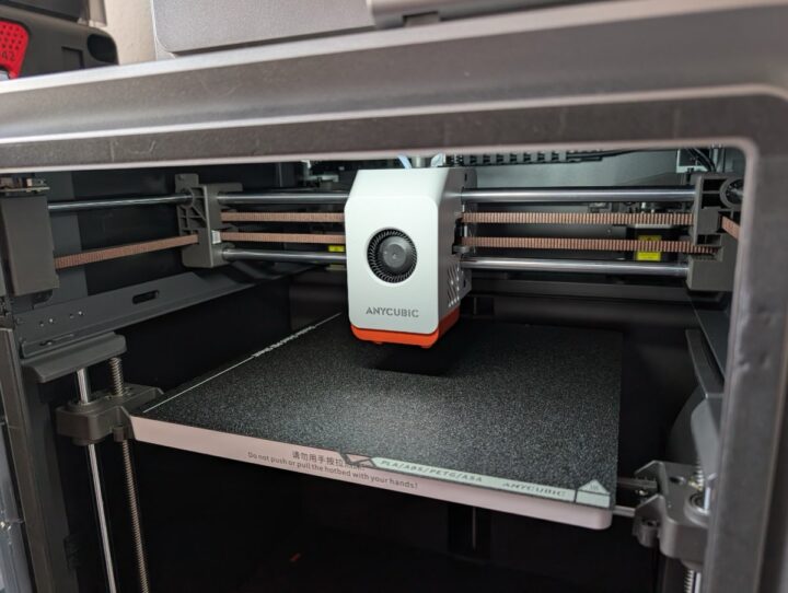 Die Core XY-Architektur ist das Herzstück. Anycubic setzt hier auf Linearschienen für die X- und Y-Achse. Das wirkt auf den ersten Blick stabil, im Vergleich zu meinem P1S oder dem Centauri Carbon scheint die Umsetzung hier auf einem ähnlichen Niveau zu liegen, zumindest was die grundlegende Mechanik angeht.