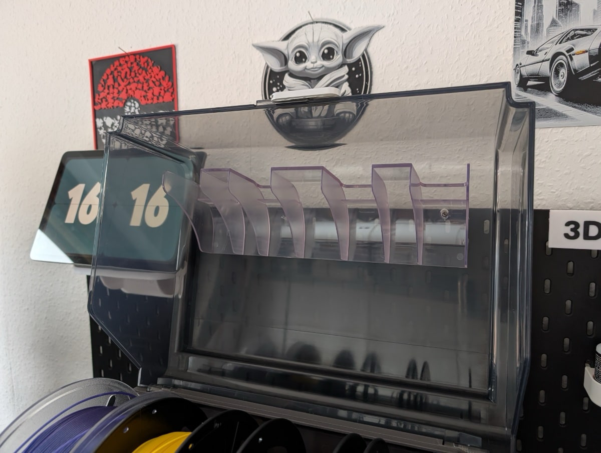 Die Verarbeitungsqualität macht einen soliden Eindruck, wenn auch nicht überragend. Der Rahmen besteht aus verschraubtem Stahlblech, nicht geschweißt wie bei manchen Industrie-Geräten, aber das ist in dieser Preisklasse normal. Was allerdings auffällt, sind die Tür und der Deckel aus getöntem Kunststoff. Das wirkt im Vergleich zu Glas bei meinem P1S oder dem Centauri etwas weniger wertig und zieht ordentlich Staub an. Funktional schließen sie aber gut und klappern nicht. Man muss abwägen, ob einem die Optik und Haptik hier wichtig sind oder die reine Funktion genügt.