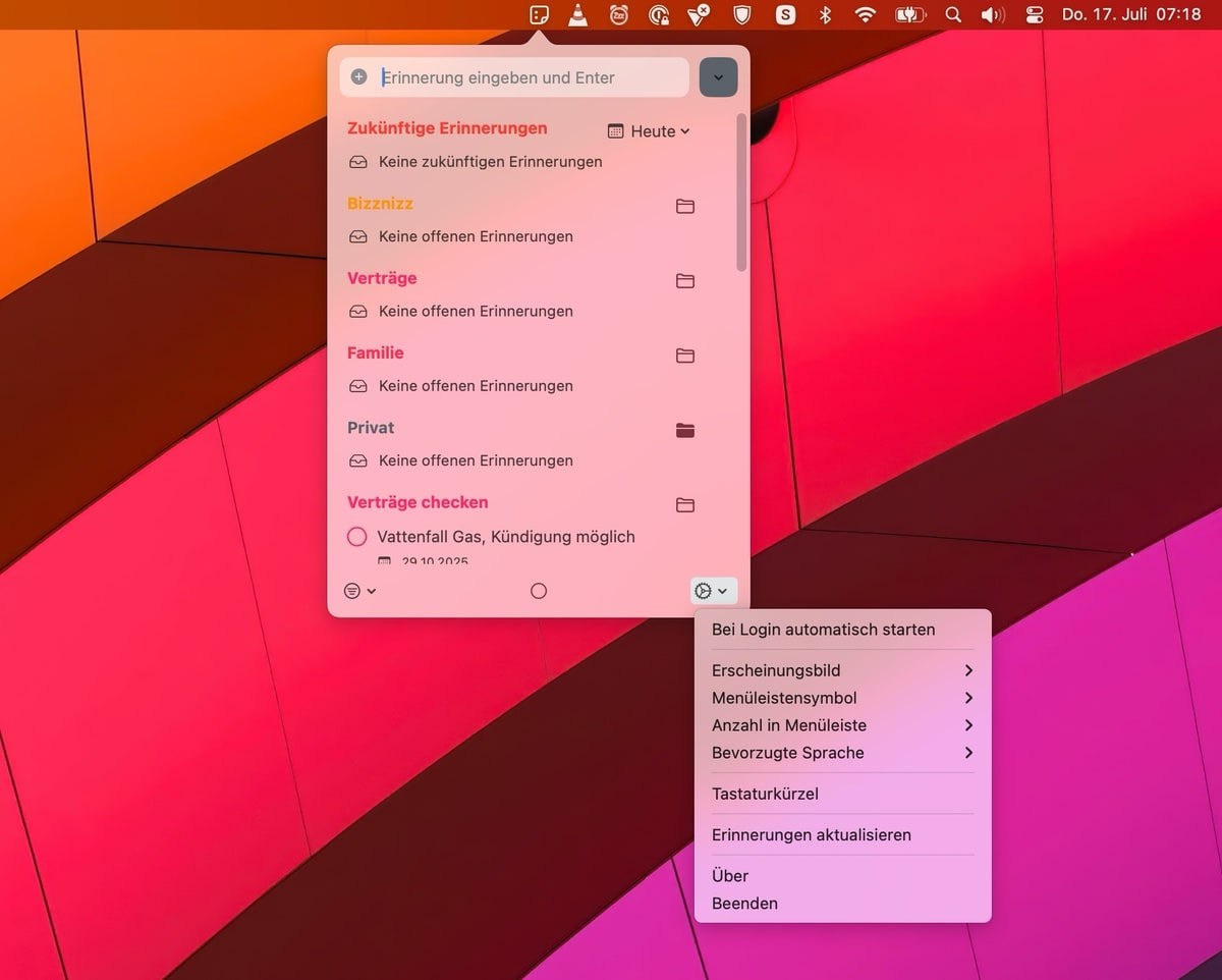 Apple Erinnerungen: Praktische Menüleisten-Integration für macOS