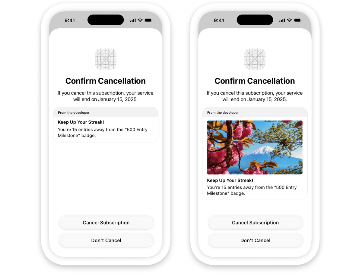 Apple erweitert die Möglichkeiten für Entwickler, Abonnenten zu halten. Mit der neuen Retention Messaging API können App-Anbieter ab sofort gezielt Nachrichten an Nutzer senden, die kurz vor der Kündigung ihres Abos stehen. Die API ermöglicht es, verschiedene Arten von Nachrichten zu konfigurieren und diese in Echtzeit auszuspielen.