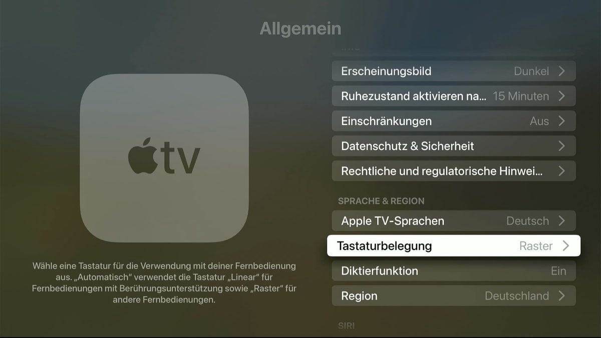 Apple TV: Tastatureingabe mit Raster-Layout beschleunigen