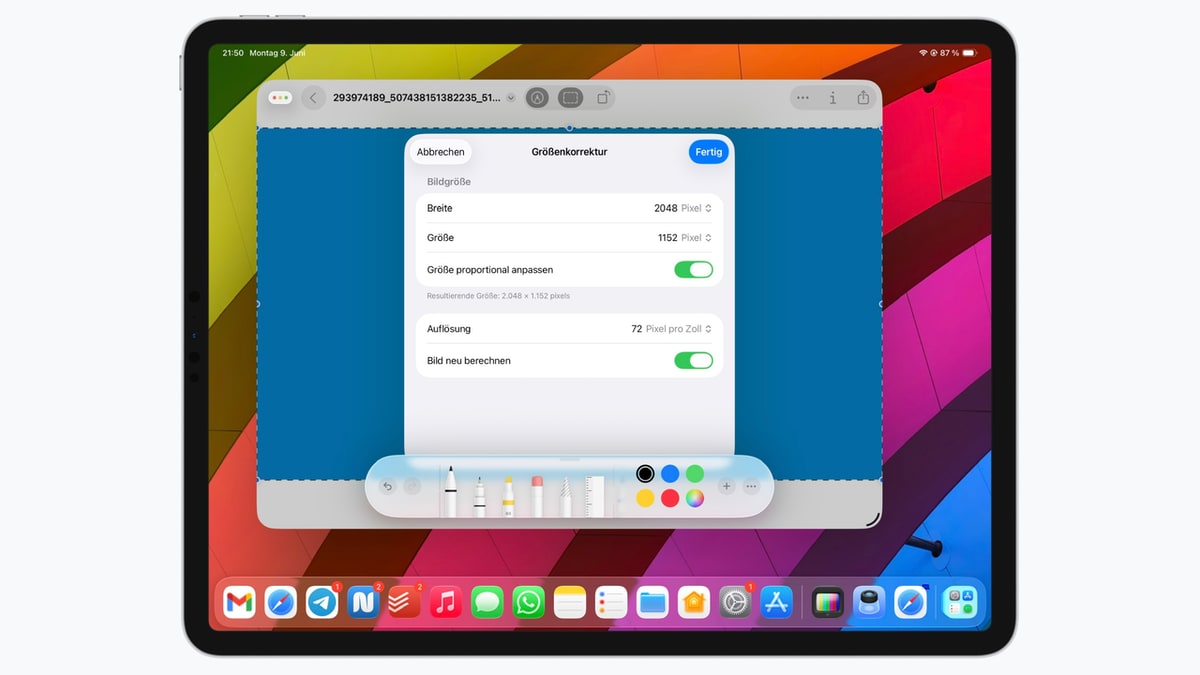 Die Benutzeroberfläche präsentiert sich meiner Meinung nach aufgeräumt und intuitiv. Werkzeuge sind schnell erreichbar, ohne das Interface zu überladen. Besonders praktisch ist die Unterstützung von Split View, wodurch sich Preview parallel zu anderen Apps nutzen lässt. Das ermöglicht iPad-Profis effizientes Arbeiten, etwa beim Vergleichen von Dokumenten oder beim Übertragen von Informationen. Die Vorschau-App ist in der Beta von iPadOS 26 zu finden und kommt im Herbst auf alle unterstützten iPads.