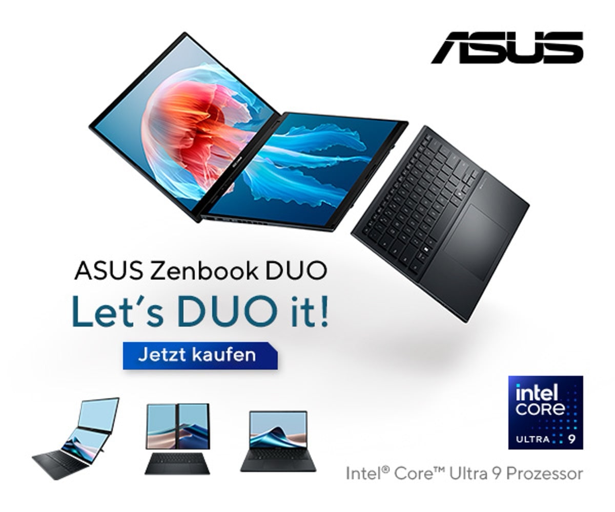 Das Zenbook Duo 2025 ist wohl eines der flexibelsten Notebooks am Markt. Die Kombination aus zwei 3K-OLEDs, sehr guter Performance, zugänglichem Bedienkonzept und guter Akkulaufzeit ist einfach stimmig. Wer viel Bildschirmfläche unterwegs braucht und bereit ist, etwas mehr zu schleppen, bekommt hier ein gutes Arbeitstier – egal ob für Office, Kreativarbeit oder Medienkonsum. Preislich startet das Zenbook Duo 2025 ab 2.099 Euro bei notebooksbilliger im Angebot.