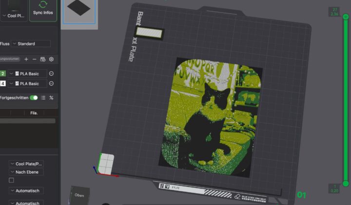 Seid ihr mit dem Ergebnis soweit zufrieden, wählt ihr noch aus, mit welchem Bambu-Drucker ihr das Ganze später umsetzen wollt und erhaltet per Download eine entsprechende 3mf-Datei. Jene lässt sich dann aber normalerweise auch problemlos auf anderen Mehrfarb-3D-Druckern nutzen, beispielsweise am Creality K2 Pro mit CFS (hier mein Testbericht) oder weiteren. Bis zu 30 solcher Bilder lassen sich vorerst in eurem Bambu-Konto ablegen. Ihr könnt aber auch einfach alte löschen und anschließend neue Bilder erstellen. Im Test hat das im Übrigen alles keine Credits gekostet, wie es sonst so oft der Fall bei den MakerLab-Experimenten ist.