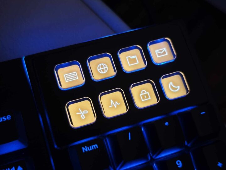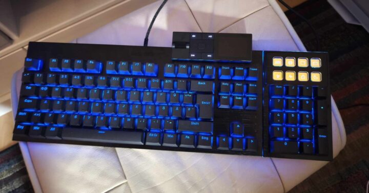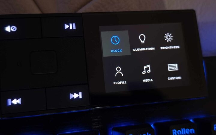Denn ich finde, dass das Media Dock etwas lose sitzt und zu viel Bewegungsspielraum hat. Das wirkt dann angesichts des Preises etwas plünnig. Das gilt aber nicht für den von rechts auch nach links versetzbaren Nummernblock, der an beiden Seiten stabil hält. Dabei ist es eine nette Sache, dass man die Display-Buttons mit jeweils 140 x 140 Pixeln als Auflösung sozusagen mit eigenen Bildern beschriften kann. Das erleichtert es, die Tasten z. B. mit Makros zu belegen und sich eine Gedächtnisstütze in Form eines prägnanten Bildes anzulegen.