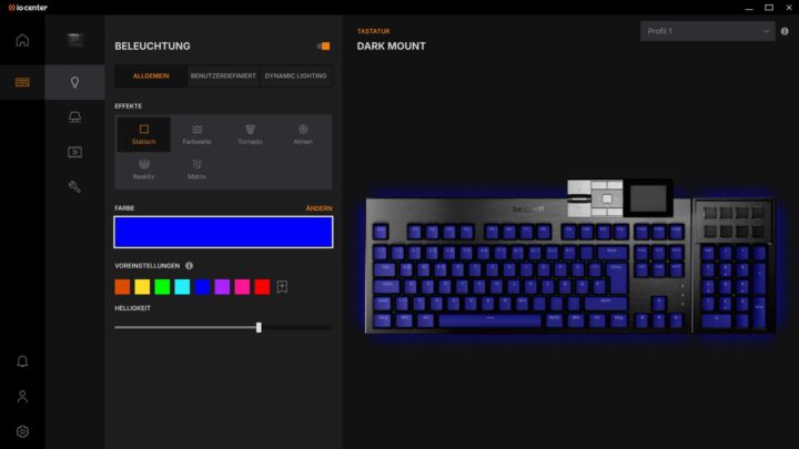 Die Software, das IO Center, ist bereits sehr ausgereift und auch angenehm aufgeräumt. Das ist also ein echter Pluspunkt der Dark Mount. Schade ist, dass es sich um eine ausschließlich kabelgebundene Tastatur handelt. Das hat mir etwa den Einsatz in meinem Gaming-Rig am Fernseher etwas erschwert. Ansonsten kann man Design und Verarbeitung größtenteils aber sehr loben. Die Dark Mount fühlt sich jedenfalls nicht wie das Debüt, sondern eher wie das Produkt eines erfahrenen Herstellers an.