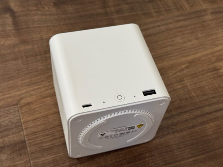 Das Beelink ME Mini NAS ist alles andere als ein typischer NAS-Klotz. Mit seinen 99 mm Kantenlänge und dem minimalistischen, beinahe wohnzimmertauglichen Design passt es wirklich überallhin, egal ob ins Regal, auf den Schreibtisch oder ins TV-Lowboard. Es gibt drei Farbvarianten (Pearl White, Midnight Grey, Peacock Blue), die Verarbeitung ist hochwertig, die Gummifüße sorgen für sicheren Stand.