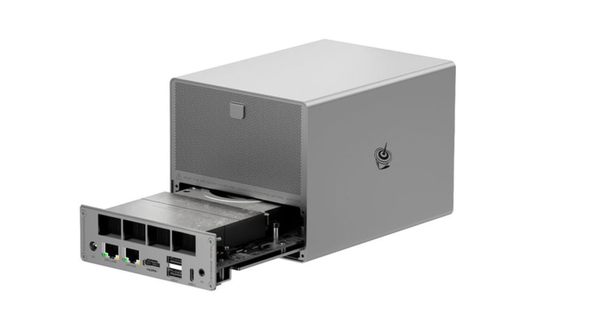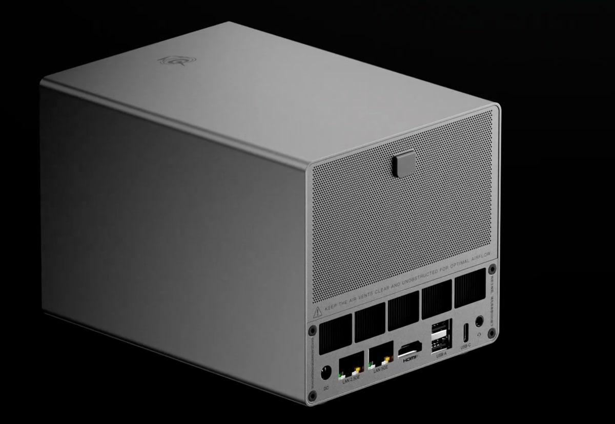 Für die Netzwerkanbindung stehen ein 5-GbE-Port von Realtek sowie ein 2,5-GbE-Anschluss von Intel bereit. Das Ganze steckt in einem kompakten Unibody-Metallgehäuse. Ein zentraler Lüfter sorgt für den Luftstrom durch das Gehäuse. Praktisch ist das intern verbaute Netzteil sowie eine integrierte Notstromversorgung, die Datenverluste bei Stromausfällen verhindern soll. Da kein Betriebssystem fest vorgegeben ist, lassen sich Windows, Linux oder spezialisierte Lösungen wie TrueNAS und Unraid installieren. Kosten soll das Ding ab 369 Dollar, bislang gibt es nur die Intel-Variante.