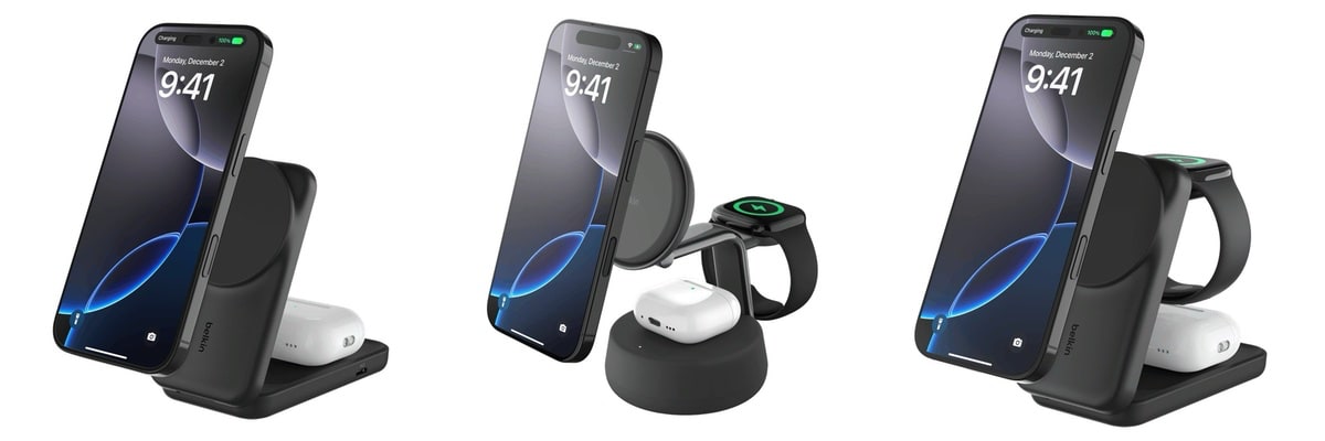 Das Einstiegsmodell, ein 2-in-1-Ladegerät, bietet neben der Hauptladefläche für Smartphones eine zusätzliche Lademöglichkeit für Zubehör wie kabellose Kopfhörer. Durch sein faltbares Design eignet es sich für mobile Nutzer. Der Hersteller ruft dafür einen Preis von rund 60 Euro auf. Für Apple-Nutzer interessant sind die beiden 3-in-1-Varianten mit zusätzlicher Lademöglichkeit für die Apple Watch.