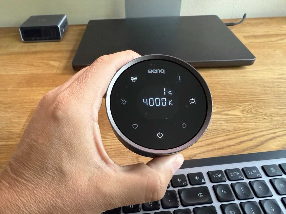Die Hintergrundbeleuchtung wurde im Vergleich zur Halo deutlich verbessert (Pro und Plus haben gar keine) und sorgt nun für eine gleichmäßigere Ausleuchtung der Wand hinter dem Monitor. In Verbindung mit der blendfreien Hauptbeleuchtung entsteht so nette Arbeitsumgebung. Übrigens: Beide Leuchten lassen sich über den Puck steuern – oder eben automatisch abstimmen. An Bord ist auch ein Bewegungssensor. Der sorgt dafür, dass die Lampe ausgeschaltet wird, wenn ihr euren Platz verlasst – oder eben angeht, wenn ihr wieder am Start seid.