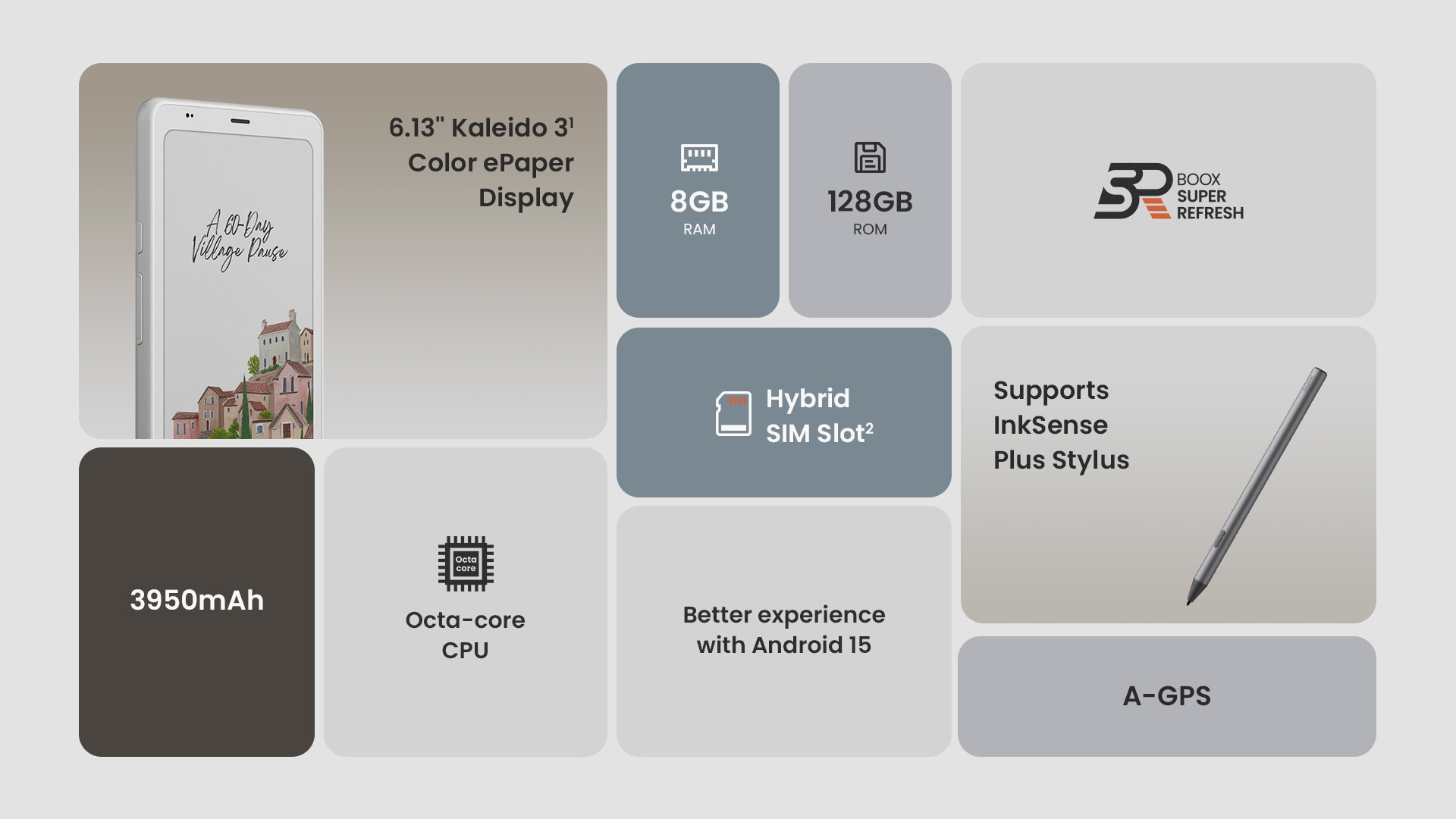 Boox bringt mit dem Palma 2 Pro einen neuen E-Book-Reader mit farbigem Kaleido-3-E-Ink-Display auf den Markt. Als Betriebssystem dient Android 15 mit Zugriff auf die Google-Dienste und den Play Store. Der Hersteller nutzt hier ein kompaktes Smartphone-Format mit 6,13 Zoll Diagonale für den Screen. Auch Stylus-Eingaben könnt ihr an dem Gerät vornehmen.