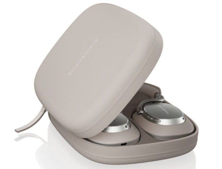 Ebenfalls im Lieferumfang der Kopfhörer enthalten sind noch ein 1,2 m langes USB-C-zu-USB-C-Kabel sowie eine Aufbewahrungstasche. Da seht ihr ja auch schon an dem obigen Bild, dass sich die PX8 S2 auch zusammenfalten lassen. Ansonsten wirbt Bowers & Wilkins unter anderem noch mit Unterstützung für Google Fast Pair zur schnelleren Kopplung mit neuen Geräten unter Android.