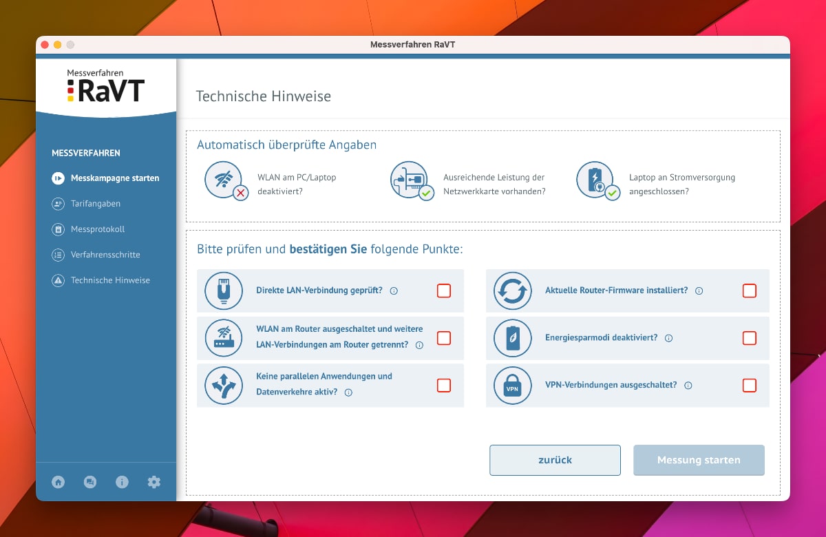 Man führt dabei zehn Messungen durch, aufgeteilt in zwei Blöcke zu je fünf Durchgängen. Wichtig ist hierbei die zehnstündige Pause zwischen den Blöcken, um kurzfristige Schwankungen auszuschließen. Ergibt das Protokoll am Ende einen Anhaltspunkt für eine Unterversorgung, lässt sich der Bericht direkt an die Bundesnetzagentur übermitteln. Dort folgen weitere Ermittlungen, die in einer offiziellen Feststellung der Unterversorgung münden können.
