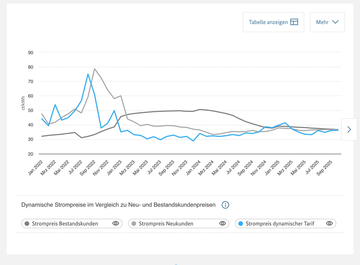 Wer sich die Zahlen anschaut, sieht schnell, dass sich dynamische Tarife theoretisch oft lohnen, da die Preise an der Börse bei viel erneuerbarer Energie im Netz sinken. Für das Jahr 2025 lagen diese dynamischen Preise seit April konstant unter den gängigen Fixpreistarifen. Wer da mal einen Blick drauf werfen will, findet die aktuellen Daten direkt auf der SMARD-Webseite.