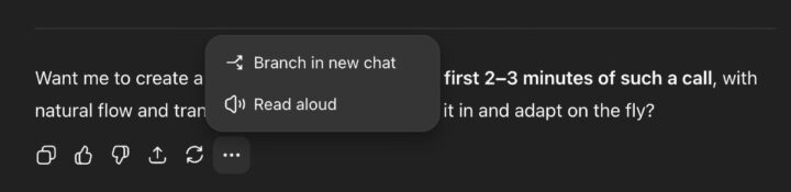 By popular request: you can now branch conversations in ChatGPT, letting you more easily explore different directions without losing your original thread.