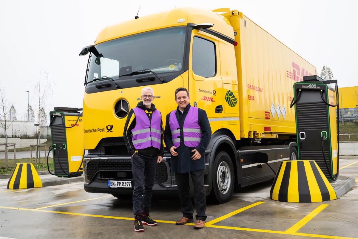 DHL und E.ON machen gemeinsame Sache in puncto Ladeinfrastruktur. Es geht dabei nicht um die kleinen Zustellfahrzeuge für die letzte Meile, sondern um die großen LKW für den Transport zwischen den Zentren. In Aschheim bei München hat man jetzt den Anfang gemacht und die ersten sechs Hochleistungsladepunkte in Betrieb genommen. Partner bei der Geschichte ist E.ON Drive, die kümmern sich um die Technik und das intelligente Lastmanagement.