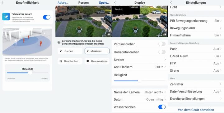 Anfangs ist noch ein wenig Feintuning mit der PIR-Erkennung notwendig, damit nicht jeder Busch, nicht jede Katze, etc. direkt eine Aufnahme und Mitteilung triggert. Dafür gibt es in der App dann auch entsprechende Kategorien. Bereiche, für die ihr keine Benachrichtigungen erhalten wollt, könnt ihr im Livebild der Kamera dann per Fingerwischen markieren. Das klappt hier nun endlich auch für die Kategorie „Anderes“, das war zuletzt immer wieder ein Punkt, an dem sich einige Nutzer störten.