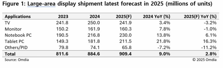 Display-Markt 2025: Wachstum bei mobilen PC-Bildschirmen, Schwächeln bei Monitoren und Smart-TVs