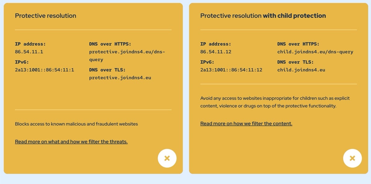 DNS over HTTPS: child.joindns4.eu/dns-query