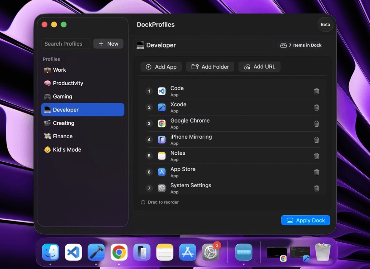 Dock-Profile für macOS: App für schnelles Umschalten zwischen Dock-Layouts