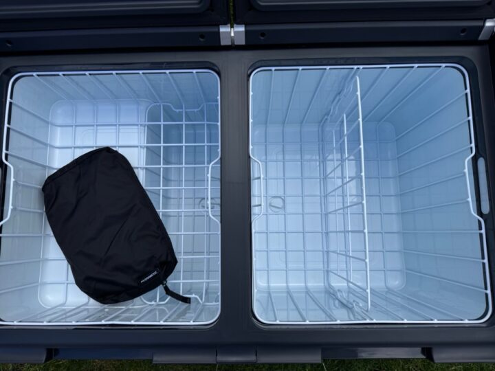 Beim Kühlen macht die Box eine sehr gute Figur. Mit dem großen Volumen von 95 Litern kann man gut und gern locker einen ganzen Kasten Bier verstauen oder eben 13 1,5 l Flaschen oder knapp 160 330 ml Dosen. Eine Menge also, wenn man sich nur flüssig ernähren will. Für den Wochenendtrip oder auch länger geht das Teil aber auch als vollwertiger Kühlschrank durch.
