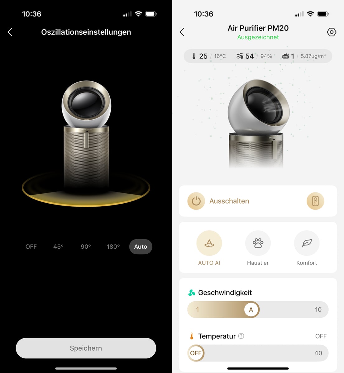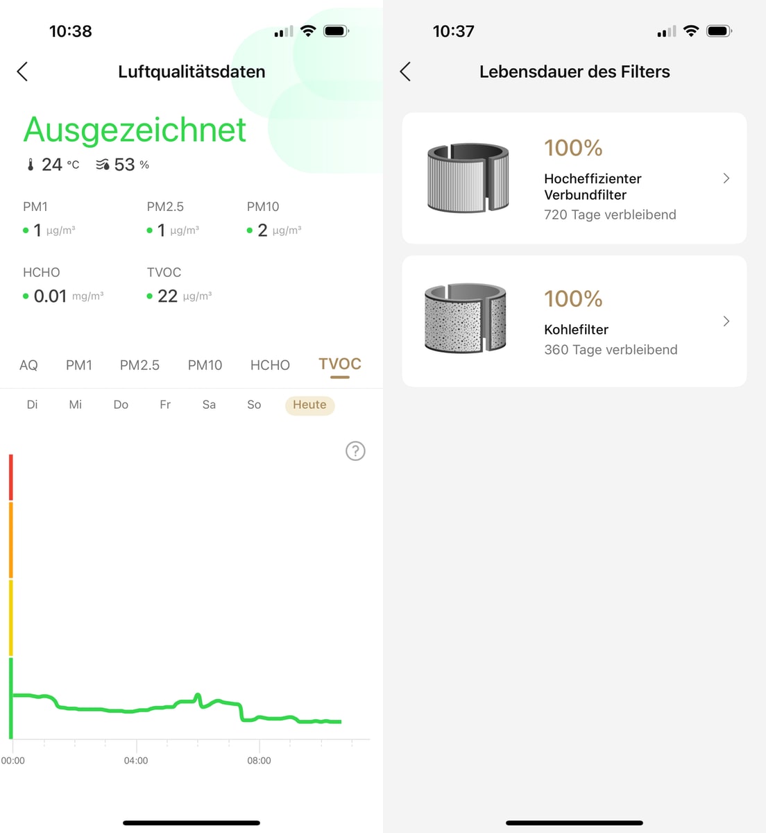 Es gibt aktuell keine Infos, was die Ersatzfilter kosten. Die App-Screenshots zeigen es, es gibt verschiedene Modi sowie das manuelle Steuern. Ich werde hier noch kein abschließendes Urteil abgeben können, wohl aber die Einschätzung, dass ich dieses Gerät optisch, technisch und App-technisch tatsächlich toll gelöst finde, preislich (aktuell 899 Euro, mit Rabatt 749 Euro), bereitet es mir aber Bauchschmerzen, man bewegt sich quasi in Dyson-Sphären (da lacht der Hobbyphysiker).