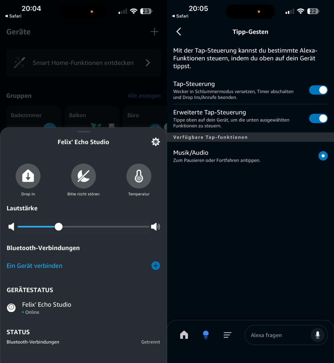 Der Echo Studio ist nicht nur Lautsprecher und Sprachassistent, sondern fungiert auch als Smart-Home-Zentrale. So fungiert der Echo Studio wie sein Vorgängermodell weiterhin als Zigbee Hub, arbeitet aber ebenfalls auch durch die Thread-Unterstützung als Border Router. So lassen sich auch Thread-Komponenten (mit Matter over Thread) anbinden und per Matter auch in weiteren Ökosystemen nutzen. Darüber hinaus arbeitet der Echo Studio auch als Matter Controller fürs Alexa-Ökosystem. Die Alexa-App empfinde ich weiterhin als unaufgeräumt und ich möchte hier auch nicht Vorschläge für Hardware oder Skills erhalten, sie bietet aber wirklich umfassende Möglichkeiten für Automationen – aber das ist keine Echo-Studio-spezifische Angelegenheit.