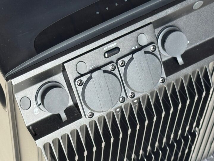 Sollte der Strom mal weg sein, könnt ihr über die zwei AC-Dosen Geräte mit bis zu 2.300 W Leistungshunger versorgen. Das reicht für fast alles, was im Haushalt an Geräten verfügbar ist, bis auf die großen Ladegeräte oder Powertools. Funktionierte im Test auch ohne Probleme.