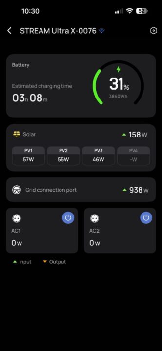 Die Einrichtung innerhalb der App ist wie für EcoFlow üblich nicht schwierig und schnell erledigt. Das Gerät wird per Bluetooth erkannt, danach muss nur noch das WLAN-Passwort bereitgestellt werden, fertig. Ich habe die Ultra X in ein bestehendes System integriert, statt sie neu einzurichten. Nach dem Set-up musste ich nichts mehr machen. Das ist ein großer Vorteil des Systems, dass es so schnell erweiterbar ist.