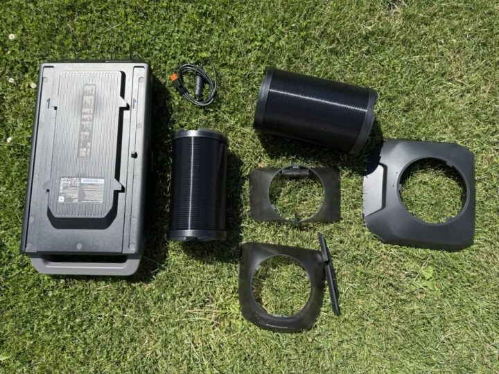 Die Akkulaufzeit ist stark vom Modus abhängig: Im Eco- oder Sleep-Modus sind bis zu 8 Stunden drin, im Max-Modus ist nach knapp drei Stunden Schluss. Die Ladeoptionen sind dagegen vielfältig. Das geht per Steckdose, Solarpanel oder Powerstation. Wer den Akku ans Gerät macht, muss aber mit einem verdammt unhandlichen und sehr schweren (25 kg) Gerät vorliebnehmen.