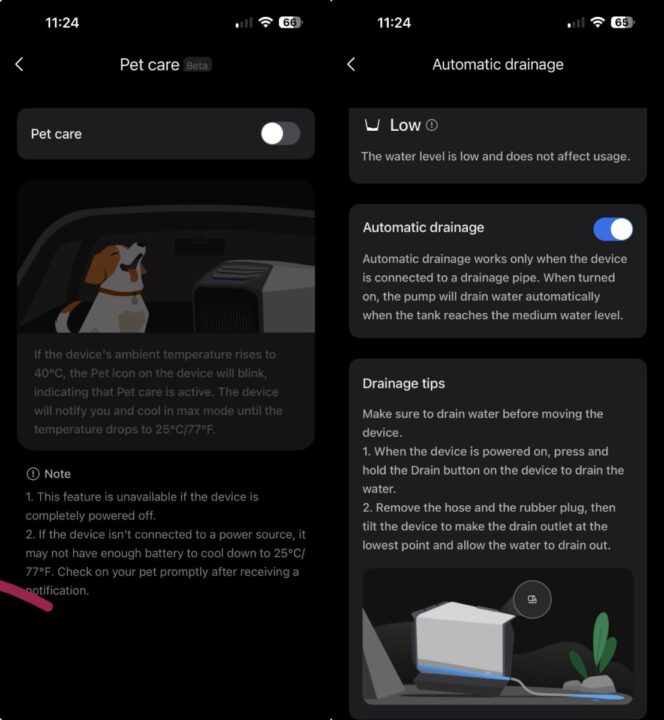 Neu und praktisch ist die Entfeuchtungsfunktion, die vor allem im Herbst oder bei längeren Standzeiten Schimmel vorbeugt. Die App-Steuerung ist noch besser geworden, und die neuen Modi (Sleep, Automatik, Pet Care) machen das Handling flexibler. Sleep-Modus ist angenehm leise (ca. 45 dB), aber ab Eco- oder Max-Modus wird’s richtig laut. Nämlich bis zu 60 dB und damit lauter als die Wave 2.