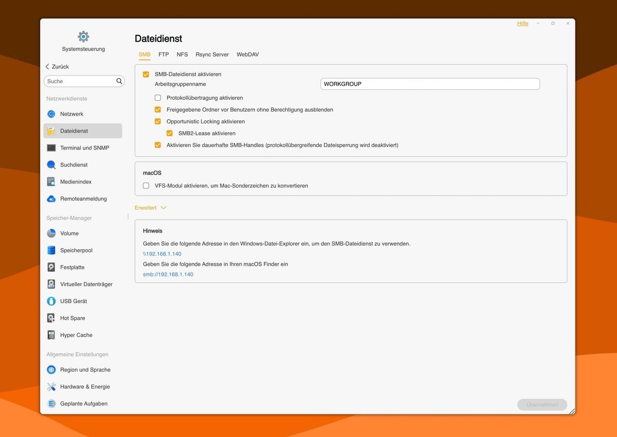 Und sonst so, die wichtigen Dinge? Bezüglich der Performance habe ich nichts zu meckern. An einem 10-Gbps-Router mit mehreren Nutzern kam ich beim durchschnittlichen Kopieren auf das Terramaster-NAS auf bis 580 MB/s im Hoch. Dabei naschte sich das TerraMaster F4 SSD ca. 22 Watt. Im Leerlauf waren es dann 13,5 Watt. Das muss man sich vielleicht einmal alles durchrechnen, falls man plant, die Kiste 24/7 mit Docker-Containern usw. laufen zu lassen, oder ob für dauerhafte Docker-Tools vielleicht ein Raspi besser ist. Ich zahle beispielsweise 29,77 Cent/kWh bei meinem Versorger. Rechne ich das NAS mal pauschal mit 20 Watt, dann wären das im Jahr 20 Watt x 24 Stunden x 365 Tage = 175,2 kWh, was im Jahr dann ungefähr 52 Euro Stromkosten sind.