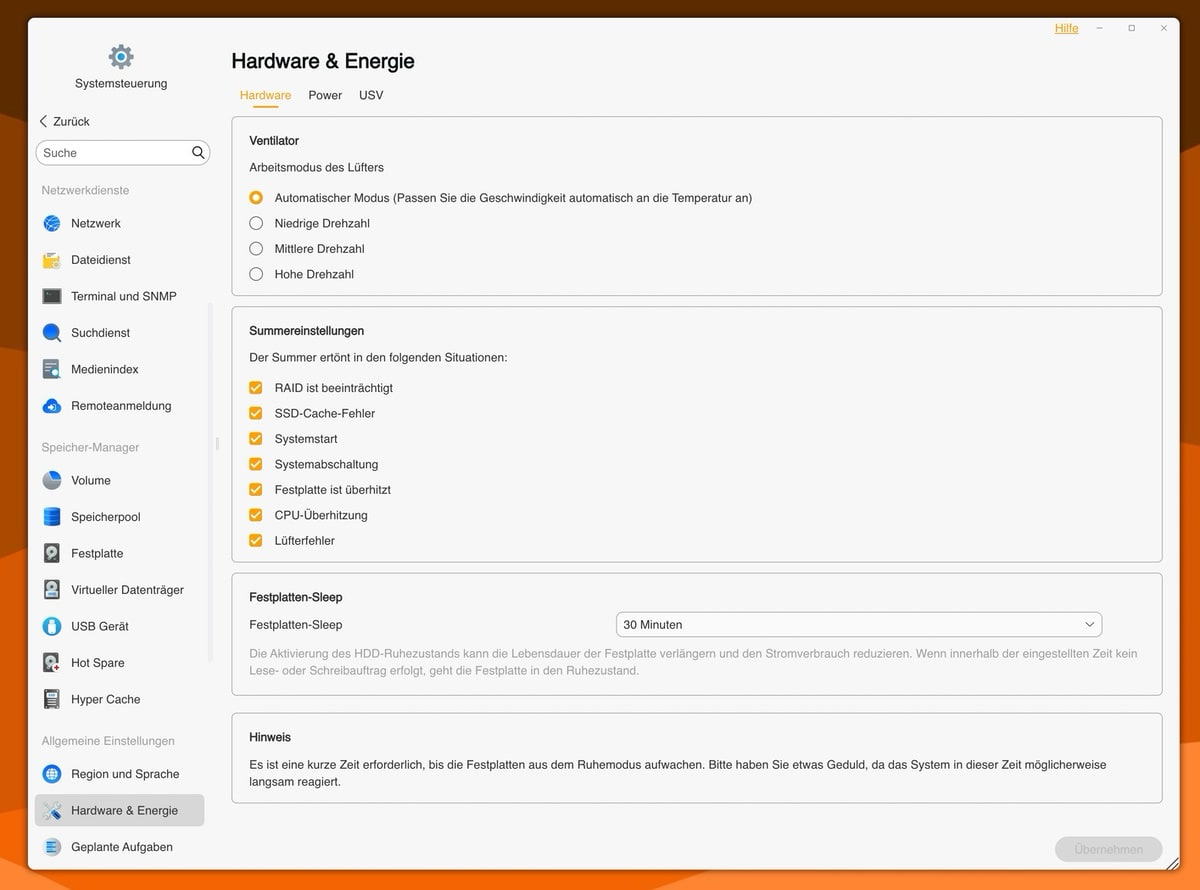 Im Test war zu beobachten, dass das System nie wirklich heiß wurde und dass selbst beim Anspringen der Lüfter temporär nie eine Geräuschkulisse entstand, die nervig war. Gerade im Vergleich zu meinen anderen NAS-Produkten ist das ein Unterschied wie Tag und Nacht, was aber natürlich auch den Rödel-Platten in meinen anderen Gehäusen geschuldet ist.