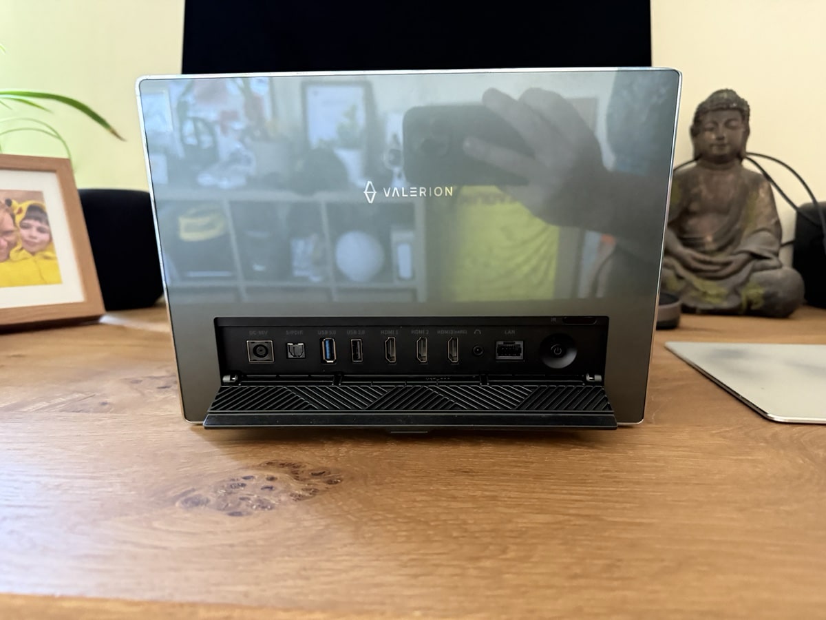 Die Tonwiedergabe überraschte mich positiv: Zwei integrierte 12-Watt-Lautsprecher liefern einen erstaunlich guten Klang. Für audiophile Ansprüche steht eARC mit Dolby Atmos und DTS-X zur Verfügung. Wer sich so ein Gerät holt, möchte vielleicht auch vielleicht ein Mehr an Sound haben.
