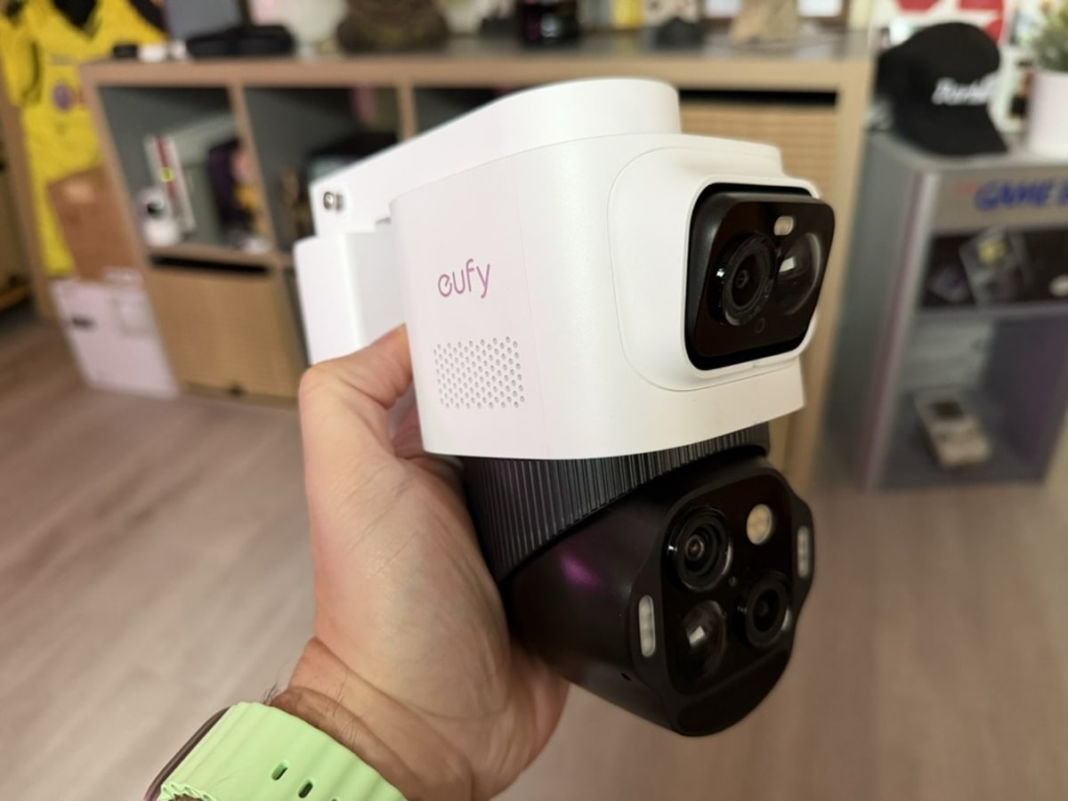 Eufy hat neulich die eufyCam S4 vorgestellt, eine Sicherheitskamera, die ich nun schon einige Zeit im Outdoor-Einsatz habe. Das Gerät vereint Elemente einer klassischen Bullet-Kamera mit einer schwenkbaren PTZ-Kamera. Im Inneren arbeitet ein Triple-Linsen-System mit 16 Megapixeln. Die Hauptlinse deckt ein Sichtfeld von 130 Grad ab, während das 360-Grad-PTZ-Tracking-System horizontales und vertikales Schwenken ermöglicht. Der Zoom erfasst Details bis zu einer Entfernung von 15 Metern.