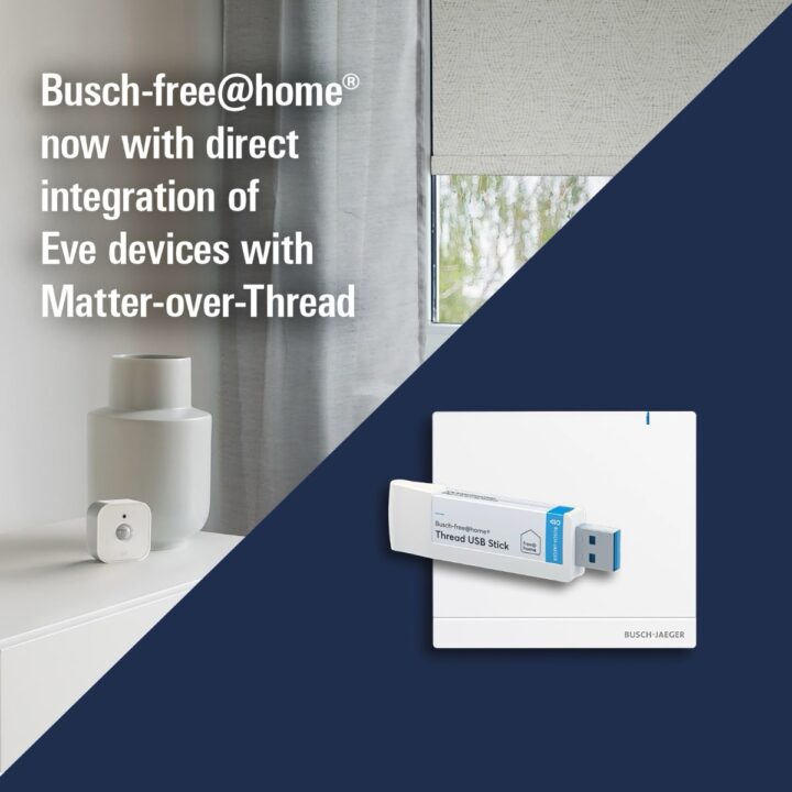 Ab sofort lassen sich Matter-fähige Geräte direkt ins Busch-free@home-System von ABB Busch-Jaeger einbinden. Möglich macht es ein neuer Thread-USB-Stick. Wird der am System Access Point genutzt, wird dieser zum Matter-Controller samt Thread-Border-Router. So können zum Beispiel Eve Thermo, Eve Motion oder Eve Blinds Collection einfach hinzugefügt, gesteuert und automatisiert werden, komplett über Matter-over-Thread.