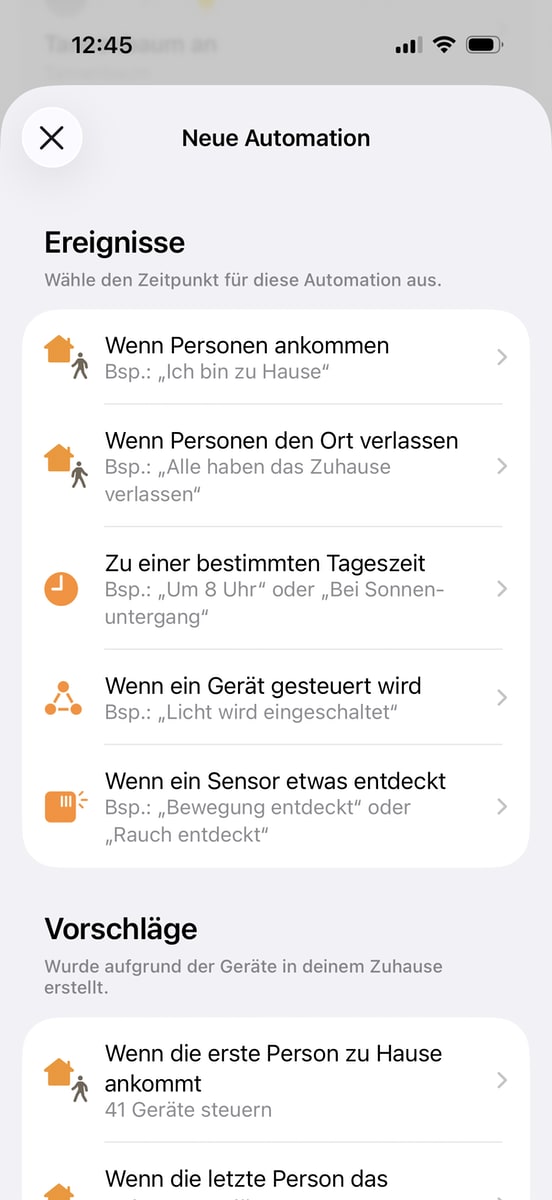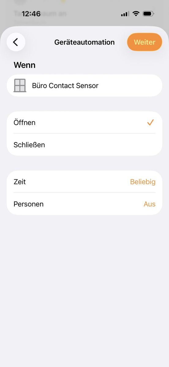 Der Sensor wird wie üblich in der Home-App eingeklinkt, per HomeKit-Code (oder Matter) scannen oder Hersteller-App, fertig. Sobald der Sensor als Kachel in Home auftaucht und den Status wechselt, ist die Basis da. Der interessante Teil steckt in der Automation.